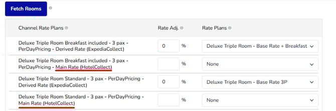 - Verify derived rate plans are linked to the correct main rate plan on the OTA