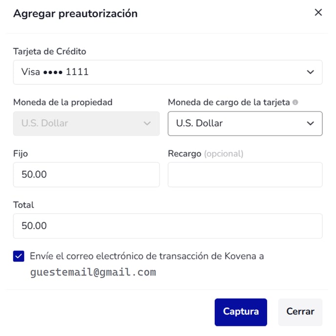 Marque la casilla si desea enviar el correo electrónico de transacción al huésped.