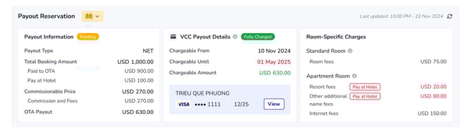Con Hotel Link Pay, los hoteles pueden cargar las tarjetas virtuales de Booking.com (VCC) directamente desde los detalles de la reserva con solo un clic. Esta solución integrada agiliza la recolección de pagos, reduce las ausencias (no-shows) y proporciona un seguimiento seguro y en tiempo real de todas las transacciones. Contáctenos para activar Hotel Link Pay en su propiedad hoy mismo.