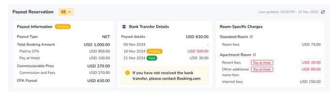 Mejorar la Transparencia: Permite ver claramente cómo se procesan y desembolsan los fondos, comprendiendo las cantidades recaudadas por Booking.com en nombre del hotel y las que el hotel cobrará directamente al huésped durante su estancia.