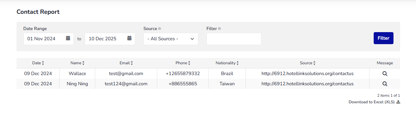 - Click on 'Download to Excel (XLS)' to save the contact list.