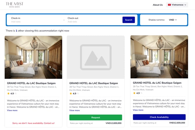 A Booking Widget for hotel group is an interactive component on your website’s interface that get the requested information from the booking engine and present it to the guests. These Widgets will appear on your website and show all of your hotels in your hotel group.