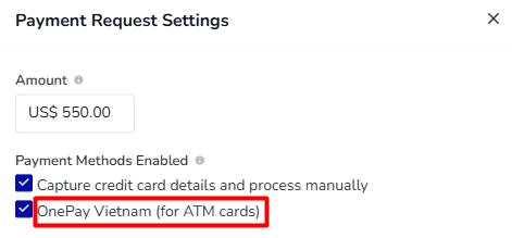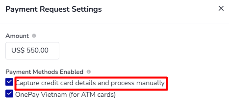 After selecting 'Request Online Payment', a Payment Request Settings window will appear.