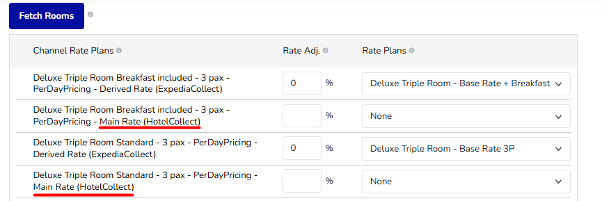 Note: Please remember to always map the main rate plans from OTA with rate plans in Hotel Link:
