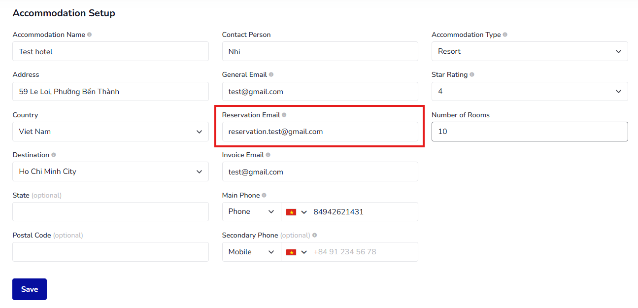 Go to Booking Engine > Setup > Settings