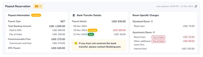 Informações de Pagamento: Um resumo dos fundos desembolsados pelo Booking.com para sua propriedade referente às reservas.