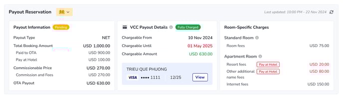 Com o Hotel Link Pay, os hotéis podem cobrar os cartões virtuais do Booking.com (VCC) diretamente dos detalhes da reserva com apenas um clique. Esta solução integrada agiliza a coleta de pagamentos, reduz as ausências (no-shows) e fornece um rastreamento seguro e em tempo real de todas as transações. Entre em contato conosco para ativar a Hotel Link Pay na sua propriedade hoje mesmo.