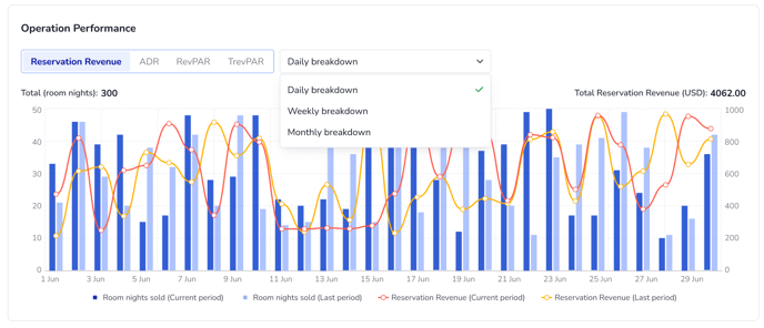 Tổng quan toàn diện về hiệu suất hàng ngày, bao gồm doanh thu, số đêm phòng đã bán, tỷ lệ lấp đầy, ADR và RevPAR mang lại giá trị về hiệu quả vận hành và lợi nhuận của cơ sở lưu trú của bạn.