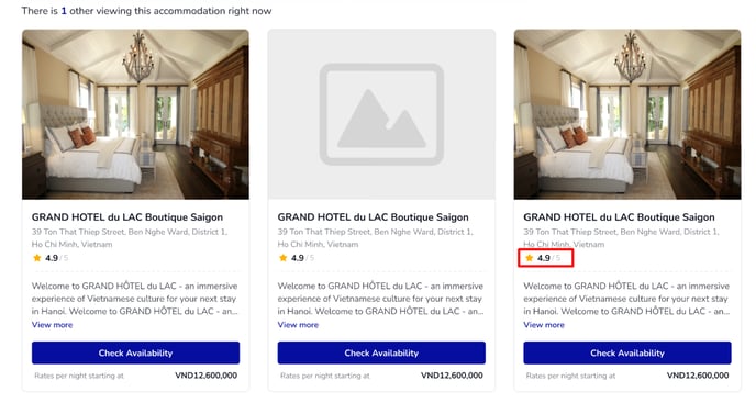 Hiển thị đánh giá khách sạn: Bật hoặc tắt hiển thị đánh giá cho từng khách sạn trong nhóm, dựa trên đánh giá đã được cấu hình trước đó.