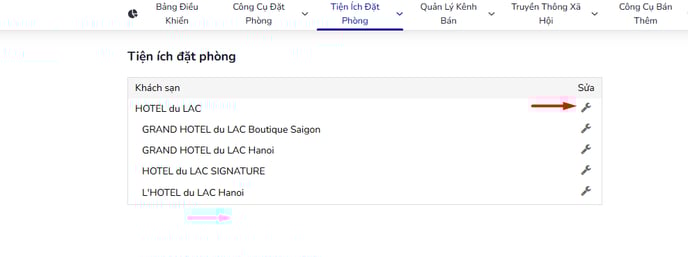 Nhấp vào biểu tượng “Chỉnh sửa” đầu tiên. Đây là tiện ích đặt phòng chung cho nhóm khách sạn.
